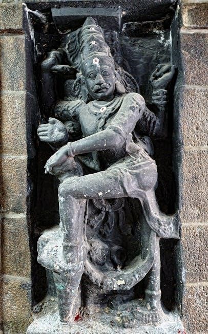 The hymn’s structure and language point to a composition likely originating in South India, specifically Tamil Nadu, where Lord Muruga is prominently worshipped. The availability of the Kanda Sasti Kavasam PDF in Tamil underscores its deep roots within Tamil culture and religious practice.